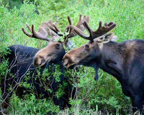 Moose are the largest members of the deer family, known for their impressive antlers and long legs, which enable them to navigate through their natural habitats of forests, swamps, and wetlands. Found predominantly in the northern regions of North America, particularly in Canada and Alaska, these majestic animals are typically solitary creatures. There are three primary species of moose recognized in North America: the Eastern moose, prevalent in the northeastern U.S. and Canada; the Western moose, which roams across the Rocky Mountains; and the Shiras moose, a smaller variant found in the western United States. Moose play a crucial role in the ecosystem by grazing on aquatic plants and young trees, shaping their environment in significant ways. Photographers often seek to capture the grandeur of these impressive animals, making moose a popular subject for nature photography, showcasing their beauty amidst the stunning landscapes they inhabit.
