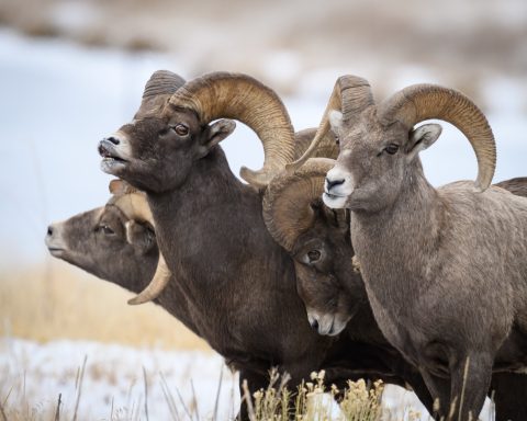 The Rocky Mountain Bighorn Sheep, known scientifically as Ovis canadensis, is an iconic mammal found in the rugged mountain ranges of North America. These magnificent creatures are well adapted to their alpine environment, showcasing remarkable climbing abilities and a keen sense of balance. Bighorn sheep are primarily herbivorous, feeding on grasses, forbs, and shrubs, and they exhibit fascinating social behaviors, often forming tight-knit herds. Their striking curved horns, which can weigh up to 30 pounds in males, make them a favorite subject for nature photography. Capturing their essence in stunning photographs not only highlights their majestic presence but also emphasizes the importance of wildlife conservation in preserving these beautiful animals and their habitats for future generations.